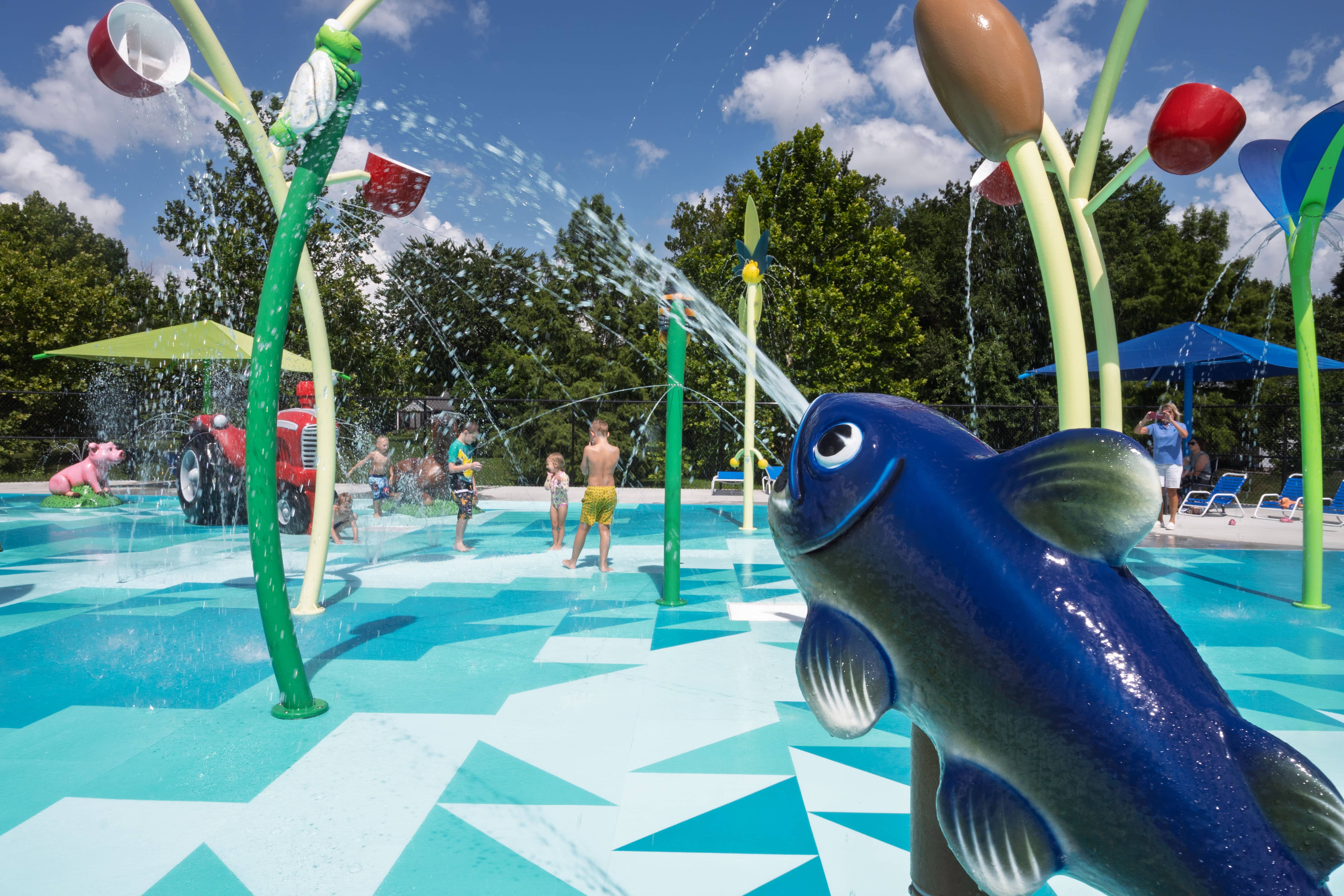 Complementing the themed features are Themed Essentials like Cattails Too™ Complete Three Unit Group, accented with bees and dragonflies, along with a Spill Tower and Dew Buckets that create surprising splashes from above. Modern ColorCast™ sprayers such as Shucks, a corn-inspired piece that spins to weave playful sprays overhead, and the Sprig Sprayer add visually appealing elements and unique color accents to the splash pad. Gentle misting elements such as the Misteeee and Cool Sticks provide sensory-rich experiences, while interactive Big and Little Sqwerts™ sprayers themed as a catfish, fox, and horse encourage social play across age groups.
