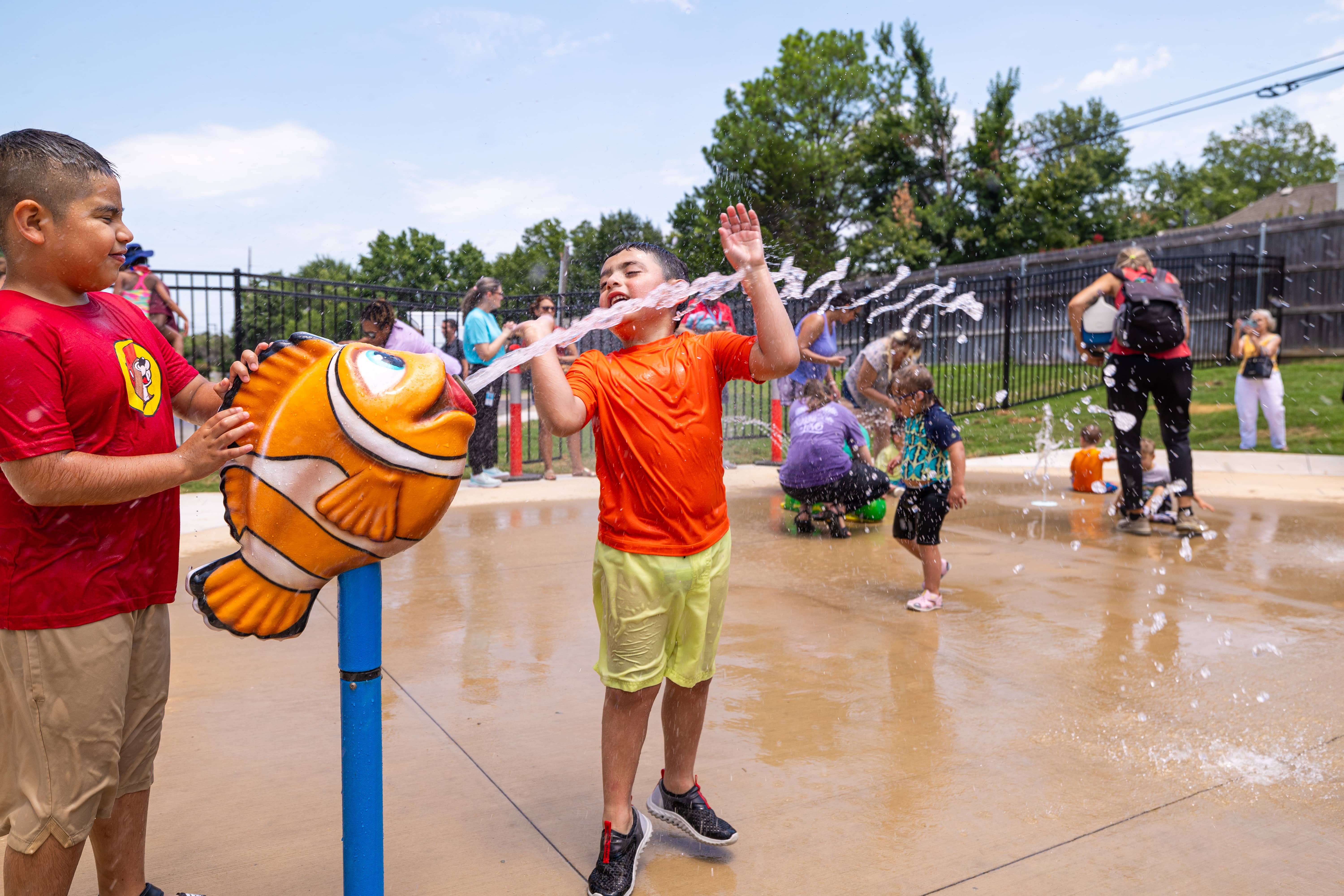 The splash pad design is rooted in inclusivity, providing a fun water play area where children with disabilities can play alongside their peers. With no standing water and a variety of spray features at multiple heights and intensities, this splash pads design provides one of the most accessible forms of aquatic play. By incorporating sensory bays with soft sprays, low-profile sprayers, and interactive features like water slides and interactive sprayers, the Sarah A. Harmon Splash Pad ensures that every child can find joy in aquatic play, regardless of ability.