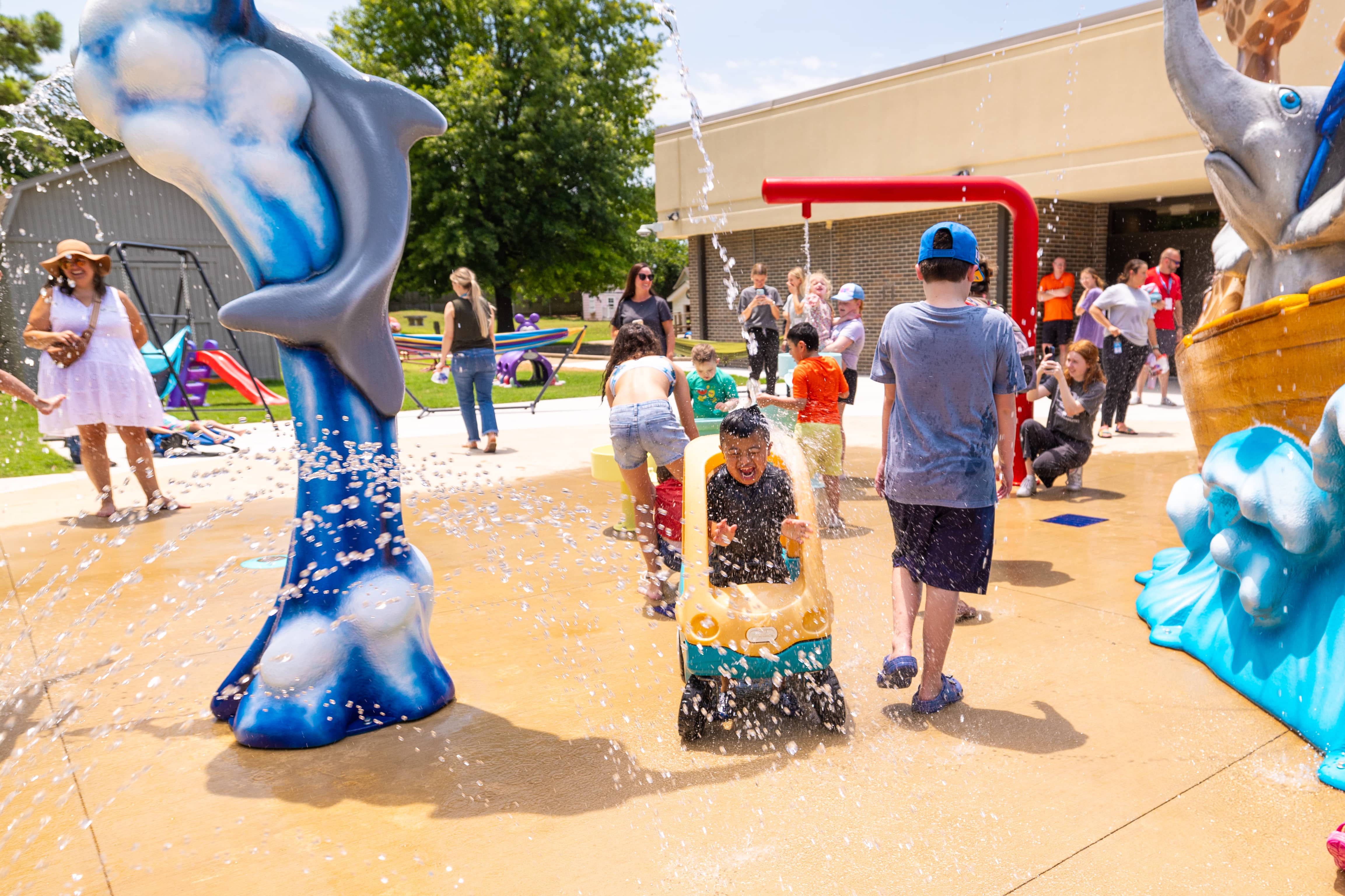 Little Light House recently unveiled the Sarah A. Harmon Splash Pad, named in memory of a beloved intern from the center’s therapy department who specialized in Speech-Language Pathology. Sarah’s passion was serving children with special needs, and her favorite activity at Little Light House was “Water Day”, a joyful, group-based outdoor aquatic play experience. The splash pad stands as a tribute to her legacy, bringing that same aquatic play expereince to life every day for the students at Little Light House.