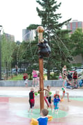 This fun themed piece adds life to a park. A nature inspired approach to the Water Maypole™ children turn the handles to cause ribbons of water to swing and sway about the pole.