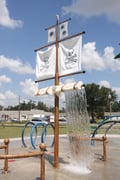 The Dumpin’ Buccaneer™ is a unique themed piece that can look like a pirate brig or a mighty man of war. The “reefed sails” dump as they fill with water. Use with the Ship Prow and Stern and G2 Cannons™ to create a super fun maritime aquatic play environment.