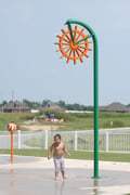 The architecturally appealing cantilevered Lotus Petal™ emits arching streams that create a weave pattern that is aesthetically pleasing and fun to run through. Additional outward arching streams emit from the top creating a second play area to interact.
