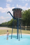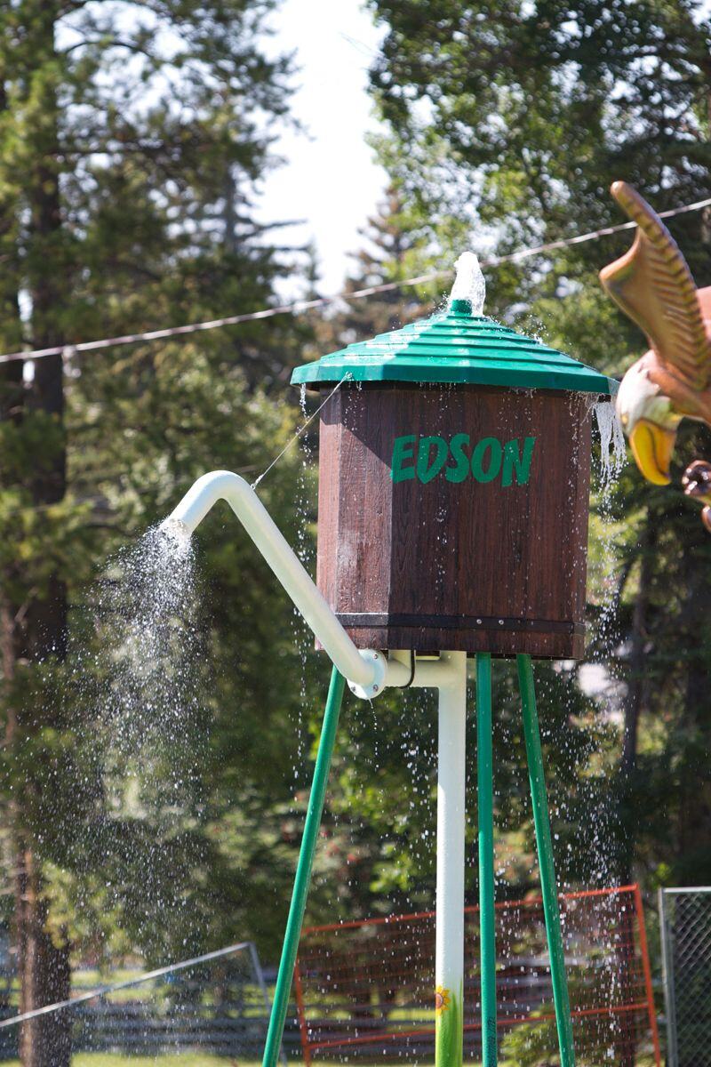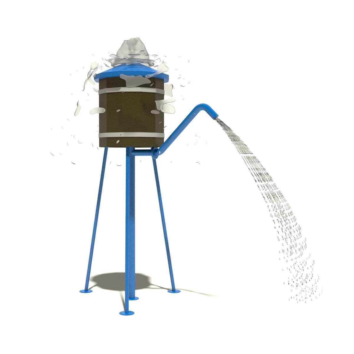 The Spill Tower is carefully detailed to recreate a train stop water tank. An optional hand wheel can regulate the flow to the downspout and top.