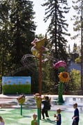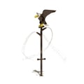 An eagle perches atop this nature-inspired piece creating twirling showers of water as children turn the handles.