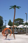 With a detailed wind-swept trunk water splashes and falls from the fronds of the Swaying Palm™.