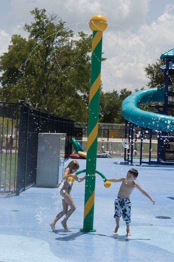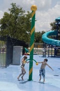 Children turn the handles of the unique Water Maypole™ to cause the ribbons of water to swing and sway about the pole.