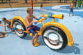 Kids can press the optional integral activator button to cause streams of water to spray from the “fenders” while mist sprays from the “tailpipes”. A mechanical horn is mounted on the front fender.Features